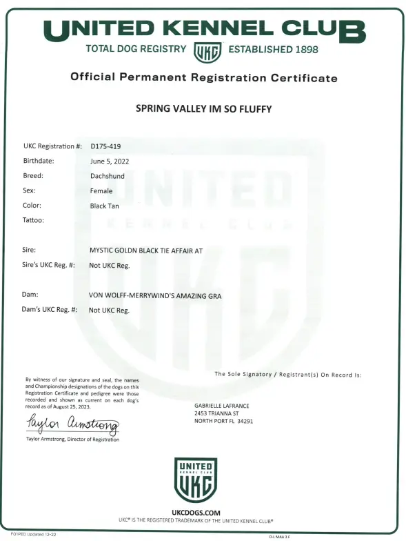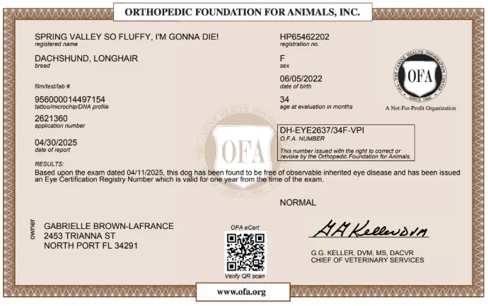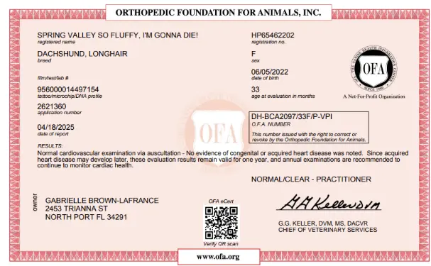 Her health and genetic integrity are top-tier—Agnes has completed all necessary breed testing through OFA and Embark, confirming her as an excellent candidate for responsible breeding. Her structure, temperament, and health all reflect the quality we strive for in our program.