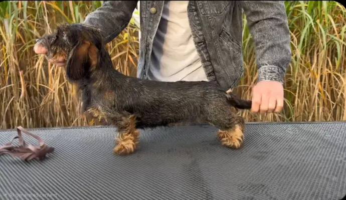 Juri is a smooth‑coat red/chocolate female originally from Italy. She’s a petite “rabbit‑size” girl, weighing about 6 pounds. Juri’s personality is truly special she’s extremely loving, full of spunk, and brings joy to everyone around her. She gets along wonderfully with the whole family and has a playful, affectionate nature that makes her impossible not to adore.